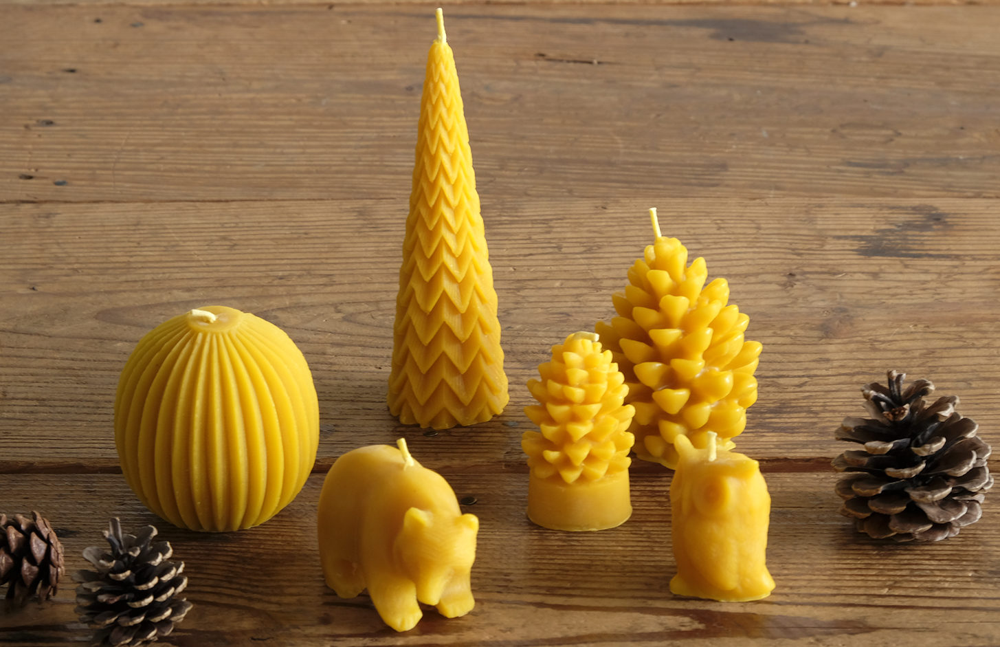 北海道で精製されたみつろうをつかったキャンドル、そしておかしのオーナメントなど