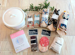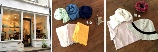 ふんわりくつした、旅するハンカチーフ、よそおいブローチなどの販売