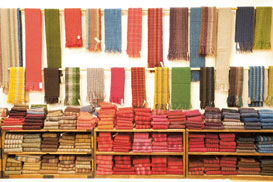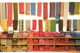 糸を手紡ぎし、染め、編んだこものを制作し販売する「羊雲」は