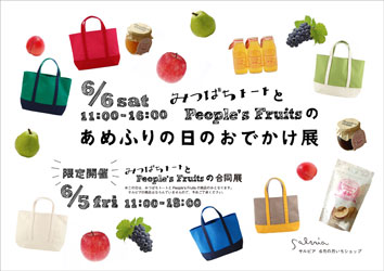 昨年、大好評でした、みつばちトートとPeople's Fruitsの合同展を月いちショップ開催前日の
