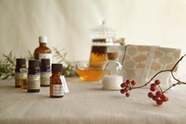 アロマオイルで香りをつけて仕上げます。贈り物にしたり、部屋に飾ったり。