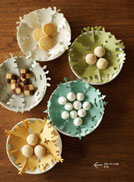 紅茶や自然の色合いの染料で染め、ほんのりと美しい色合いのハニカムフラワーを作ります。