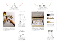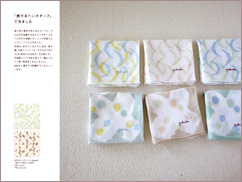 旅で見た景色や思い出を図案にして、ステンシルで小物づくり。 身近に使える雑貨やアクセサリーは、身につけるだけで旅の思い出が よみがえります。同じパターンでつくった「旅するハンカチーフ」は、 手捺染というプリント技法を使って横浜の工場でつくられています。 ハンカチを制作しているブルーミング中西を訪ね、 1枚のハンカチーフができるまでを紹介しています。