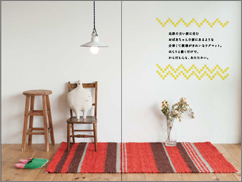 北欧の古い家に住むおばあちゃんの家にあるような、分厚くて 模様のきれいな手織りのラグマット。 そんな手織りのラグのよさを、みんなにも味わってもらいたくて、 東京・町田の工房ラ・まののみなさんに織っていただきました。 ラグができるまでや、簡単な道具でできる平織りや柄織りの ちいさなマットのつくりかたも紹介もしています。