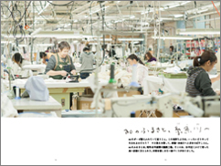 ハンカチをつくる横浜の工場へたくさんの人の手によって、1枚が仕上がります。