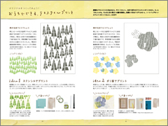 オープンスクリーンとは、シルクスクリーンの枠と電話帳の 紙を使って印刷するあたらしい紙版画です。おうちでかんたん、 テキスタイルづくりができます。 いろいろな図案のテキスタイルのつくりかたやテキスタイルを 使った小物づくり、サルビアの色あわせなども紹介しています。
