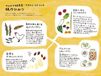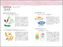 季節感をいち早く感じられる四季おりおりの保存食とそのアレンジレシピの紹介をはじめ、 料理にまつわる気になることや素朴な疑問をワタナベマキさんに尋ね、掲載しています。 9月に開講のサルビア給食室のお料理講座のことや一緒につくった樹ノ音工房の器の紹介もしています。