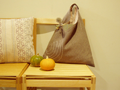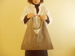 ひと針ひと針ていねいに刺し子を施したサルビアのバッグができました。A4サイズ(横)が入る大きさ。持ち手部分を取り外せて使い勝手がよいバッグです。