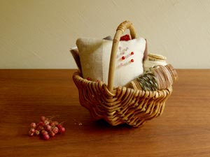 大変好評をいただいておりました、ガラスのまち針・かご入りセットを再入荷しました。ピンク・グリーン・ブルーの3セット。それぞれ、ピンクッションのデザインが違います。