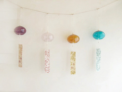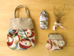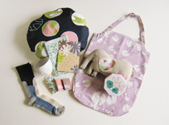 ひとつひとつ手作りしている、ガラスのまち針が入った、まち針セットを3種類つくりました。ハギレやリボン、糸などがオリジナルの袋に入っています。お裁縫好きな方へのプレゼントなどにもいかがでしょうか? 詳しくはこちら
