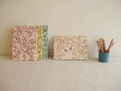 季刊サルビア最新号「美篶堂の本ができるまで」でもご紹介している、サルビアの布を使ってつくっていただいた和綴じノートです。手製本の暖かみを感じられる1冊。