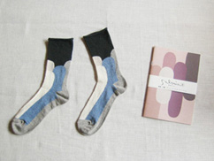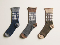 新潟のくつ下工房さんとつくった、サルビアスカンジナビア柄のくつしたができました。オーガニックコットンを使ったやわらかい肌触り。