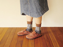 サルビアが、くつ下工房さんとつくっているくつしたに、新しい柄ができました。足首にぐるりと一周しているナデシコ柄です。くつを脱ぐとわかる、親指の先に小さく入ったナデシコもポイント。洋服や靴に合わせやすい5色展開です。