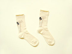 新潟のくつ下工房さんとつくった、サルビアスコスモス柄のくつしたができました。オーガニックコットンを使ったやわらかい肌触り。オーガニックコットンのやさしい白色です。