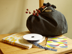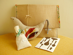 実際にロシアに訪れ、作った絵本、リボン、ポストカードをサルビアオリジナルのふろしきでバッグ型に包んだセットです。ふろしきは一枚の布なので、他の包み方を楽しむこともできます。