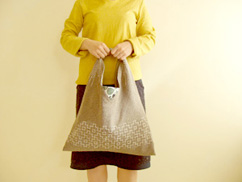 ひと針ひと針ていねいに刺し子を施したサルビアのバッグ、春らしいお花柄ができました。A4サイズ(横)が入る大きさ。持ち手部分を取り外せて使い勝手がよいバッグです。