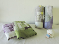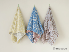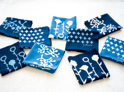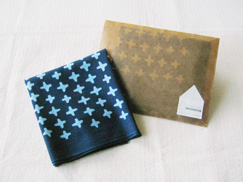 クラフト工房La Manoと一緒につくった藍染めの「おくりものてぬぐい」は、